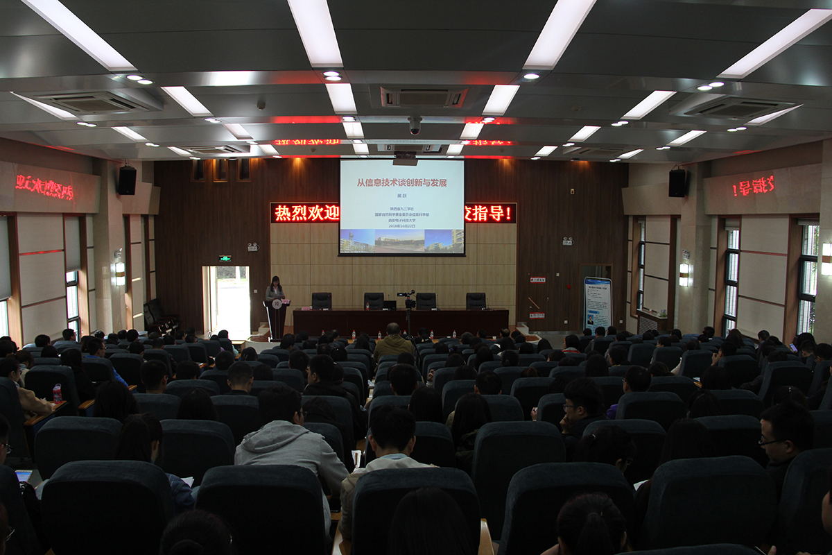 2018年10月22日,中国科学院院士郝跃在文澜楼B段一层报告厅为必赢官网全体师生作了一场题为《谈信息技术的创新与发展》的学术报告会。我校图书馆馆长李永明教授,学院院长王小明教授,党委书记黄怀平,副院长雷秀娟教授、刘侍刚教授及三百多名师生共同聆听了此次报告会。报告会由雷秀娟主持。