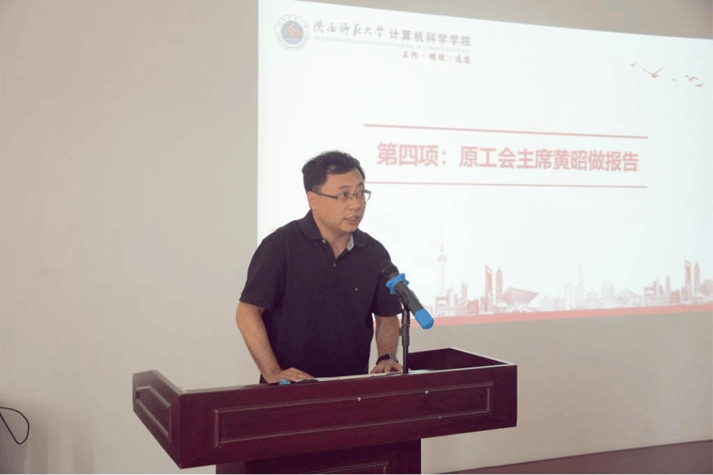 新当选工会主席祁超讲话。他表示,工会是职工之家,是党联系职工群众的重要桥梁和纽带,新一届工会委员将从教职工切身利益出发,积极为大家办好事、办实事,努力让广大教职工“暖心”、“放心”、“舒心”。