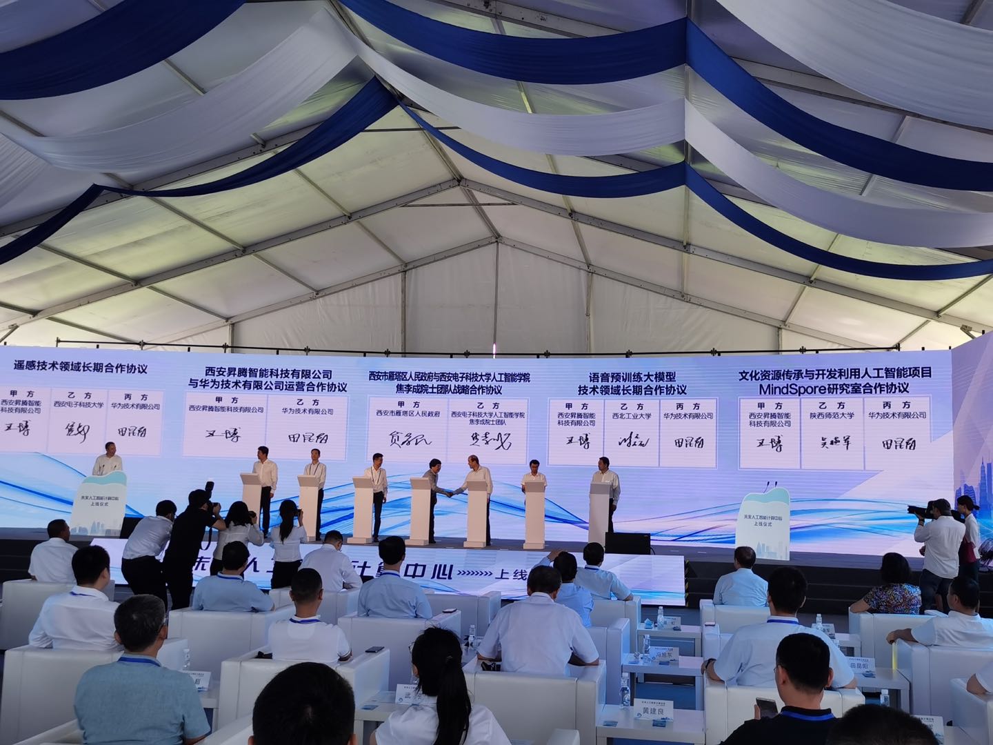 上线仪式中,华为技术有限公司、西安昇腾智能科技有限公司与西安电子科技大学、西北工业大学、必赢中国官方网站的相关研究团队签订了合作协议,致力于将基于昇腾AI算力底座的解决方案用于自动驾驶、智慧医疗、智慧城市、文化资源开发利用等多种应用场景,支撑国家战略任务落地、促进经济与产业发展融合。