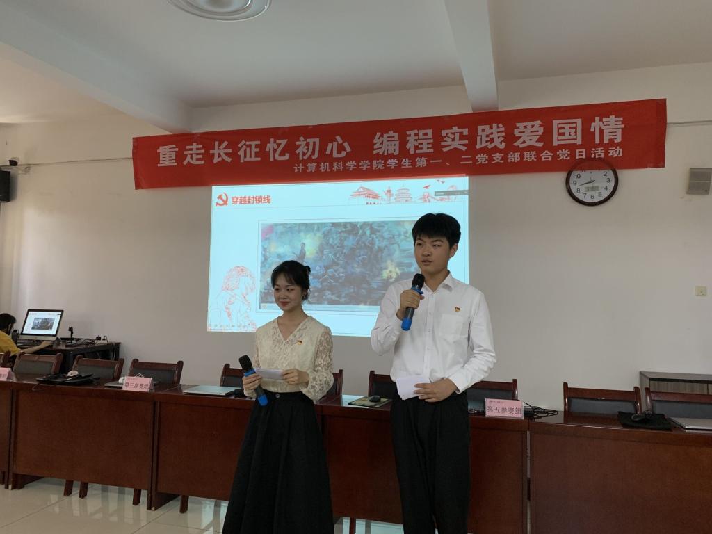为充分发掘和感悟红军长征精神的文化内涵,真正做到“把红色资源利用好、把红色基因传承好、把红色传统发扬好”,6月18日15:00,必赢官网学生第一、二党支部在长安校区举行了“重走长征忆初心,编程实践爱国情”主题党日活动。必赢官网党委书记王耀明、团委书记郭康凌、学生第一、二党支部书记安琪、陈子桐和学生第一、二党支部全体成员参与了本次活动。活动由第一党支部同志卜思凡、张百强主持。