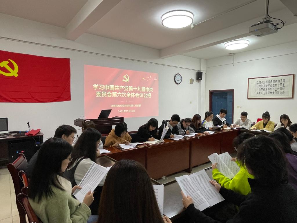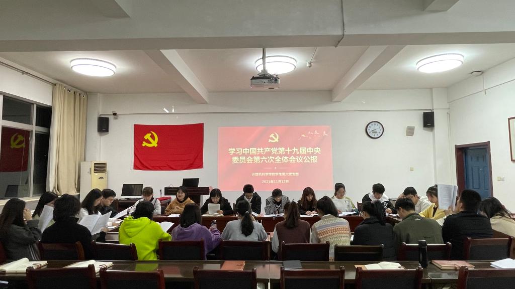 1112日晚,学院党委副书记郭康凌组织所联系的学生第六党支部同学共同学习了大会公报,各团支部和其他党支部在课后也组织观看了视频回放。