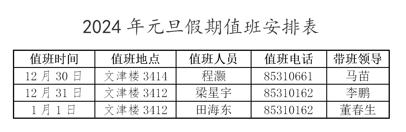 必赢中国官方网站2024年元旦假期值班安排