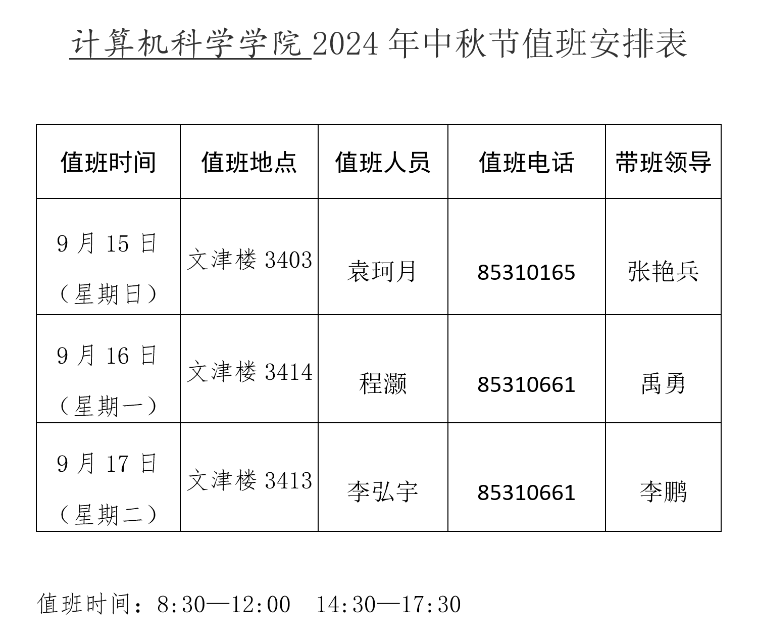 必赢中国官方网站2024年中秋节值班安排