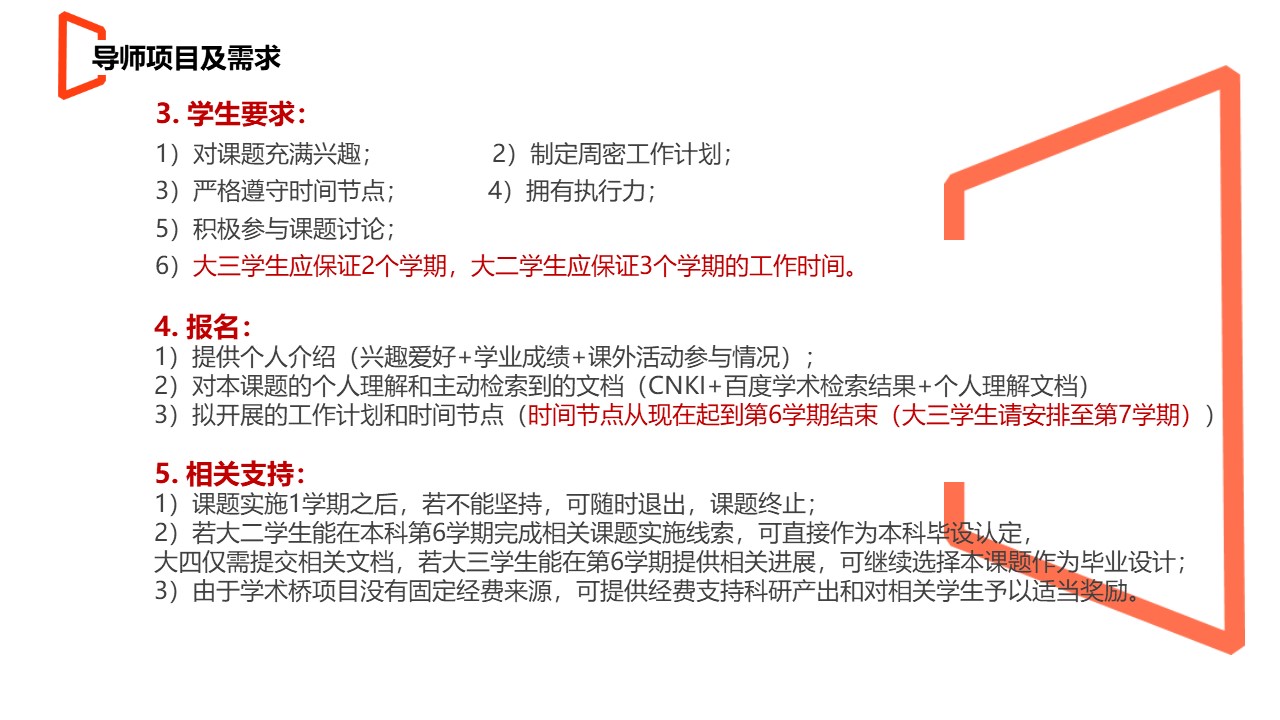 2.5月1日-5月6日,教师根据学生报名情况进行选择,并告知学生是否接收的结果,随后教师通知选拔的学生进入实验室或开始项目研究。