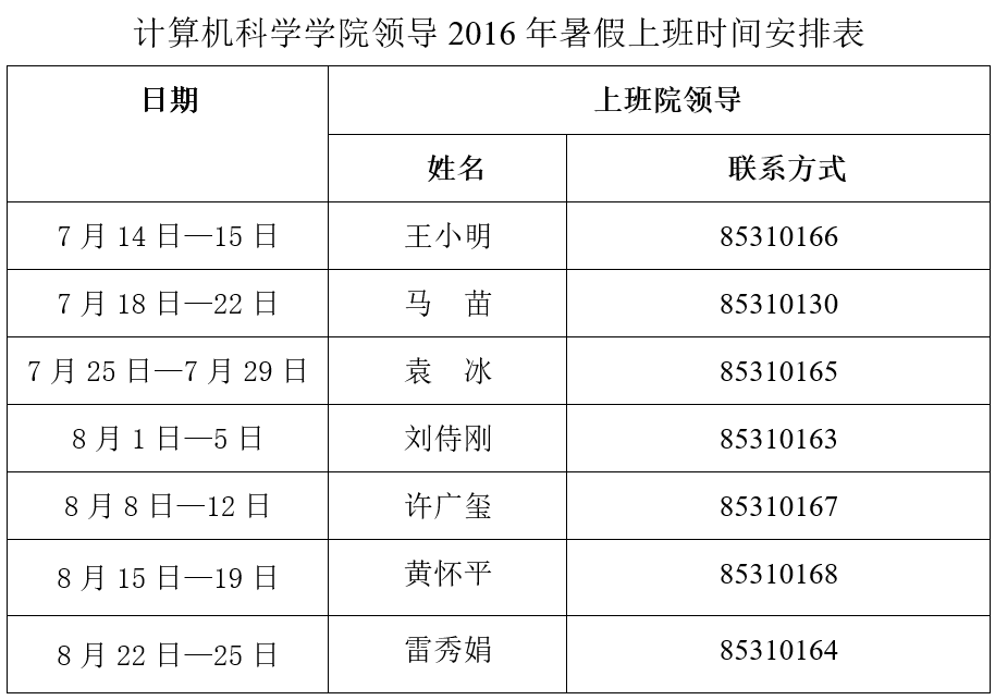 必赢中国官方网站2016年暑假上班人员时间安排表