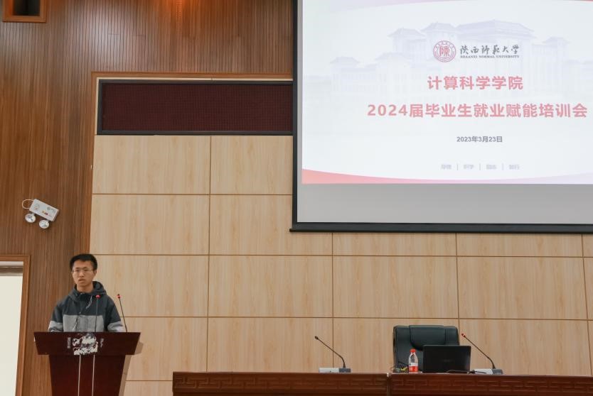 签约青岛算能科技公司的2023届研究生李彦文介绍了实习与求职经验,分享了计算机行业招聘经常考察的基础知识、算法和项目知识案例。他从简历、笔试、面试方面给大家提出了具体建议,鼓励大家在求职过程中不断积累经验。