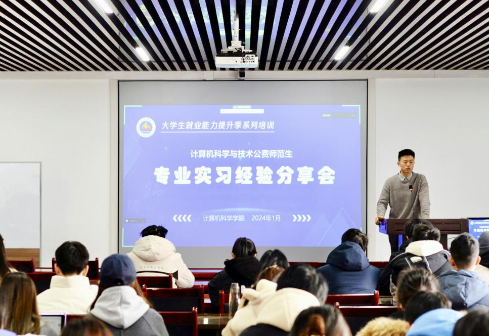 本次分享会旨在帮助2021级公费师范生同学认清当前就业形势,搭建起跨年级沟通交流的平台,展现出计科学子们在教育实习中的精神风貌,为学生专业素质能力的提升提供了实践助力。