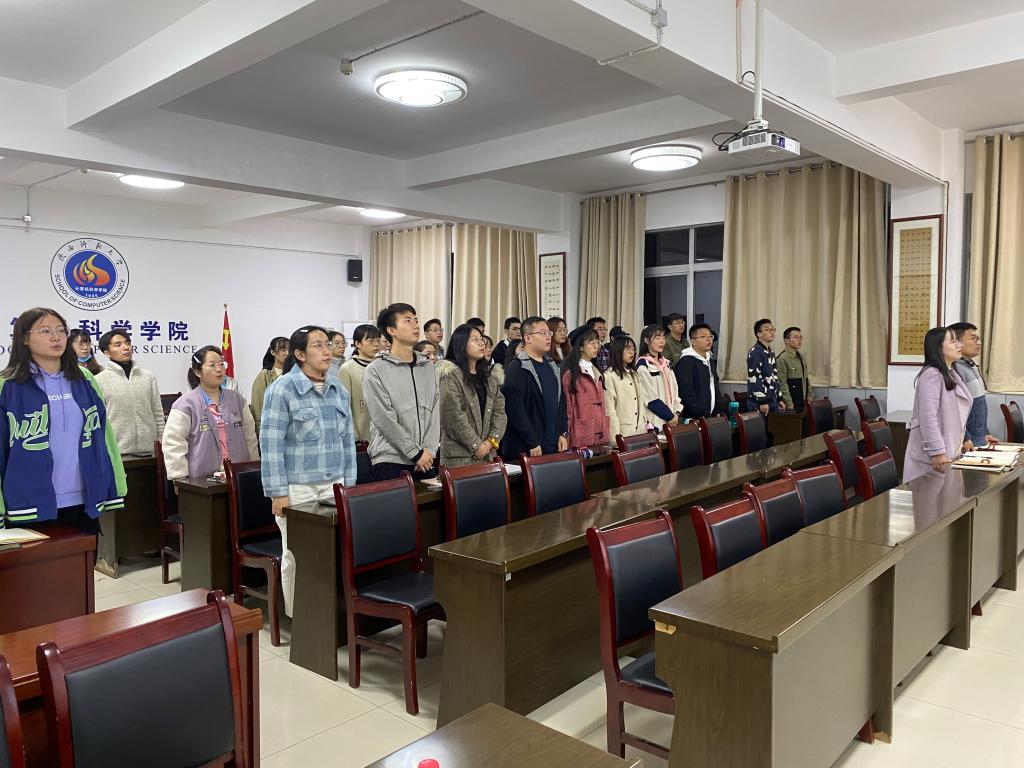 会议在全体肃立,奏唱国歌中拉开序幕。首先彭程同志带领大家学习烈士纪念日由来和意义。在国庆节的前一天设立烈士纪念日,开展烈士纪念活动,能充分体现“国庆勿忘祭先烈”的情怀,突出国家褒扬烈士的主题。