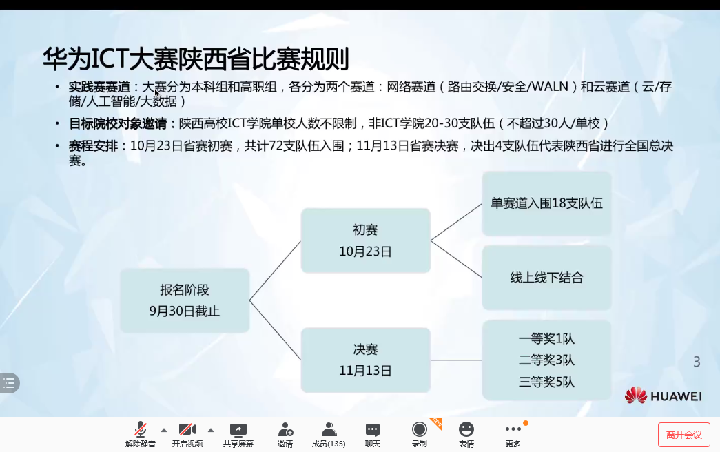 据悉“华为ICT大赛”是华为公司面向全球大学生打造的ICT人才竞技交流赛事,旨在为华为ICT学院和有意愿成为ICT学院高校的学生提供国际化的学习平台,提升学生的ICT知识水平,加强学生的实践动手能力以及运用新技术、新平台的创新创造能力。大赛不收取任何报名费及培训费。