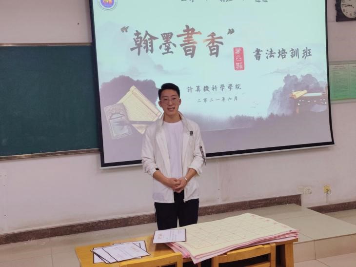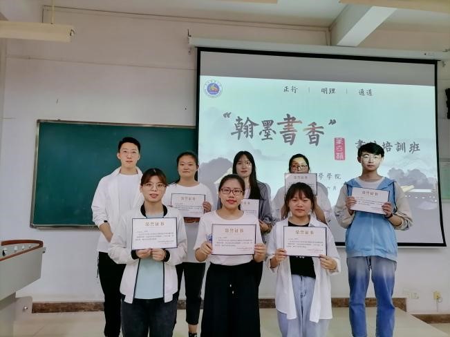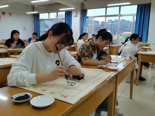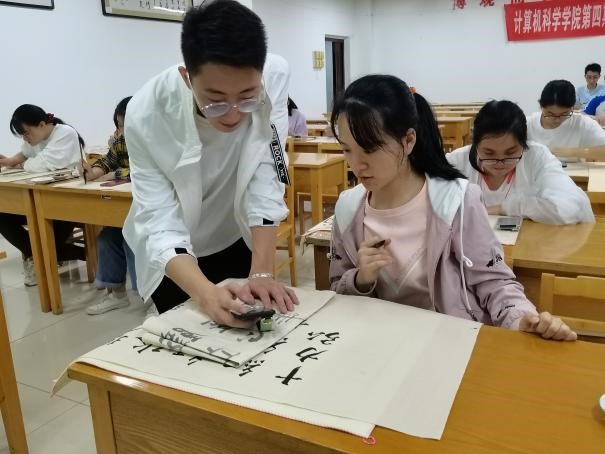 最后,文化服务队队长孙毅表示非常感谢各位学员和志愿者对书法培训班的支持与配合。汉字是一种文化符号,每一个汉字中积淀着中华民族几千年的睿智与精髓。练习书法需要持之以恒,希望同学们在未来的学习生活中也能够将书法练习坚持下去,磨练心性,陶冶情操。