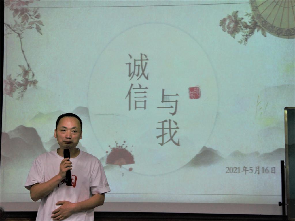最后,毛庆老师借助古人“立木取信”及当今社会无人售报摊等案例介绍了当下生活中诚信的广泛发展,鼓励大家立足自身,做好诚信,积极发展个人,争取美好的未来。