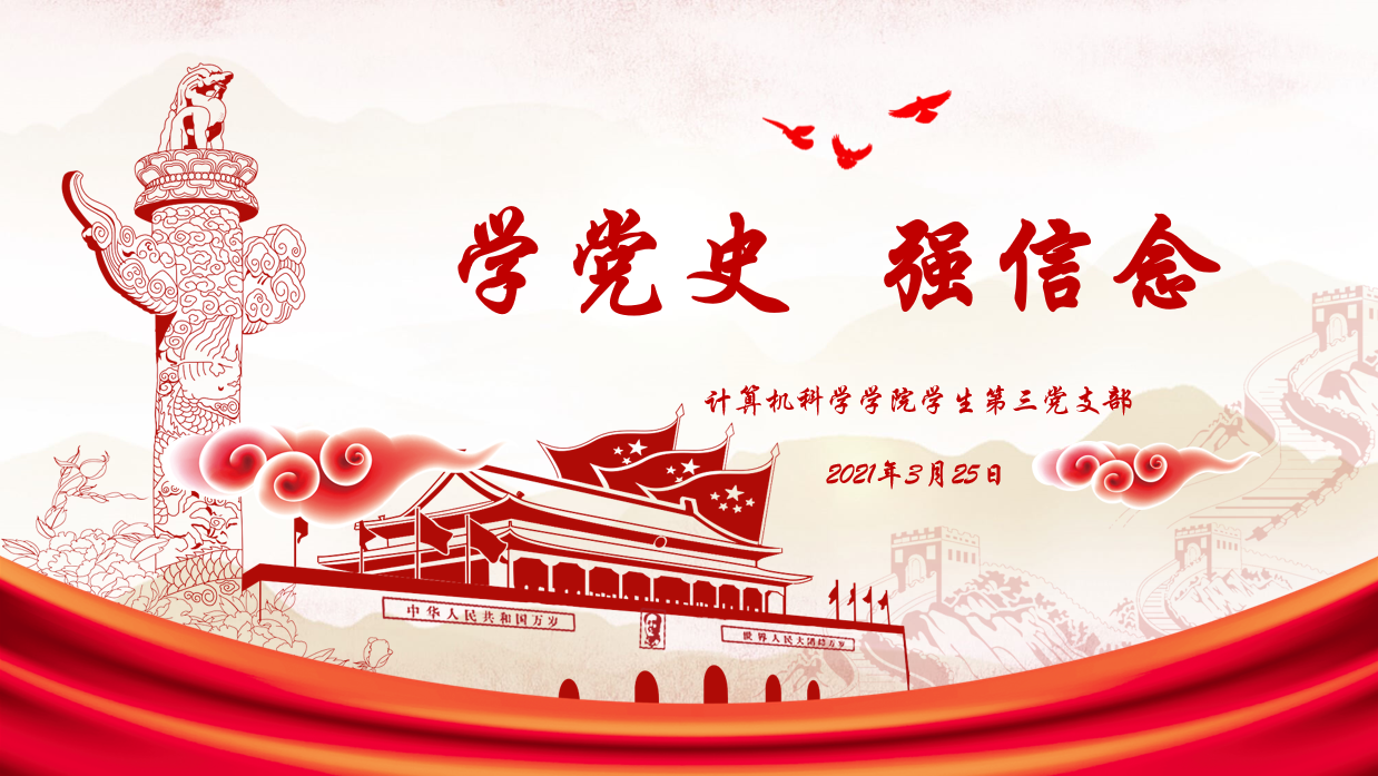 为深入学习贯彻习近平总书记在党史学习教育动员大会上的重要讲话精神,扎实开展党史学习教育,引导支部党员学史明理、学史增信、学史崇德、学史力行, 325日晚,学生第三党支部在文津楼3524室开展了“学党史 强信念”主题学习,会议由支部书记任仰主持,支部全体党员参会。