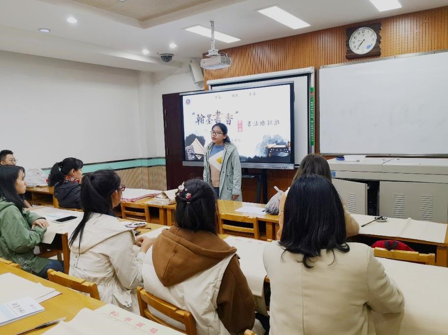 中华优秀传统文化是大学素质教育的内在要求,加强中华优秀传统文化教育是高校立德树人的重要载体。为营造浓郁的书香氛围,加强学院文化建设,增强学生文化自觉和文化自信,3月18日晚,必赢官网第四期“翰墨书香”书法培训班在文津楼1503正式开班。学院党委副书记袁冰老师及三十余名书法班学员参加了本次开班仪式。开班仪式由学院团委书记郭康凌主持。