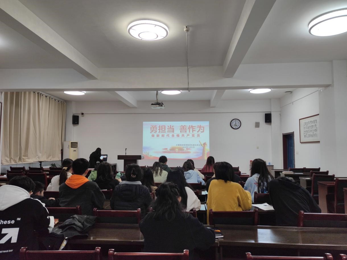新时代赋予新责任,新责任呼唤新担当。为加强支部党员的思想政治建设,学习贯彻习近平总书记的重要讲话精神,牢记“四有”要求,必赢官网学生第五党支部于12月2日晚在文津楼3412报告厅开展了“勇担当、善作为,做新时代合格共产党员”主题党日活动。本次活动由支部组织委员赵雪玲同志主持,支部全体成员参加。
