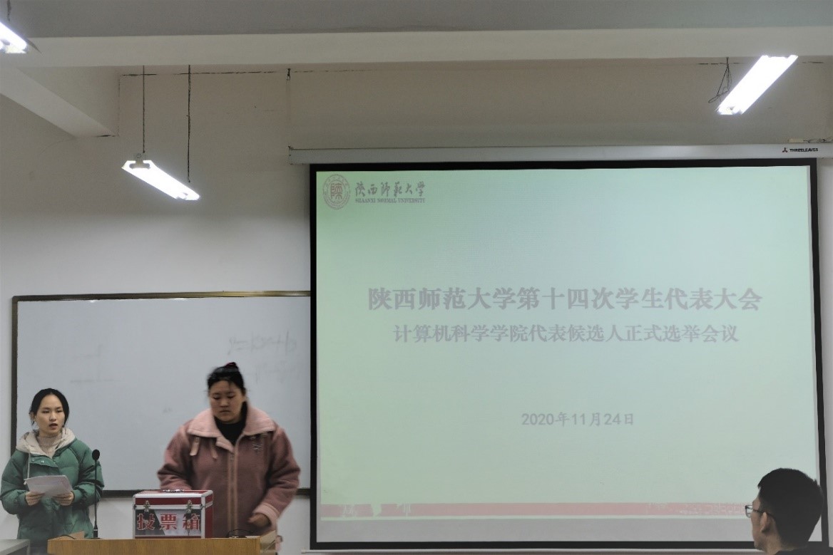 预选会议、正式会议按照议程提名通过了监票人、计票人名单,宣布了候选人基本情况。最后由各学生代表认真负责地投出神圣庄严的选票。