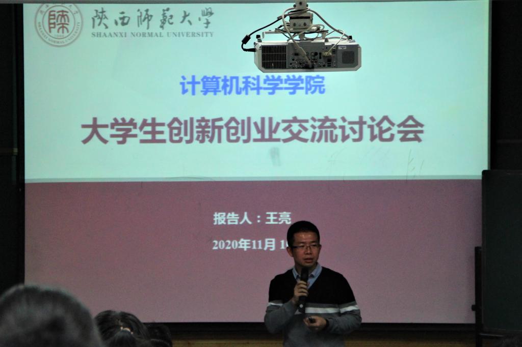 之后,王亮老师向同学们做了题目为《大学生创新创业交流讨论会》的讲座。王亮老师从大学生创新创业角度出发,就大学生创新创业相关政策,创新创业竞赛介绍,大学生为什么要参加创新创业竞赛,大学生如何参加创新创业竞赛四个方面为同学们上了生动的一课。在介绍大学生创新创业竞赛时,王亮老师向同学们介绍了第六届中国国际互联网+大学生创新创业大赛,微软创新杯大赛,国家大学生创新创业训练计划,ACM国际大学生程序设计竞赛等该领域专业赛事,让同学们对大学生创新创业领域专业赛事有了系统的认识。讲座最后,王亮老师鼓励全体大一新生要持续关注感兴趣的领域,打好相应基础,锻炼表达能力,树立敢闯会创意识。乐观积极,开放进取,敢于尝试,敢于犯错。两位老师语言风趣幽默,现场气氛热烈,掌声经久不息,同学们感触颇深,收获满满。
