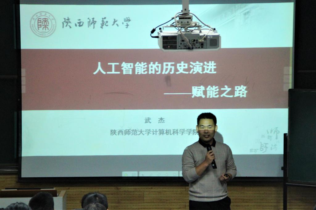 2020级新生辅导员毛庆主持了本次学习教育活动。武杰老师首先为同学们做了题目为《人工智能的历史演进——赋能之路》的讲座。讲座开始,武杰老师从人工智能的方方面面,人工智能的发展之路,人工智能的表象,人工智能的载体四个方面向同学们介绍了人工智能这一时下大火的专业领域。首先,武杰老师向同学们介绍了人工智能领域的ImageNet large—scale visual recognition challenge竞赛,以及自动驾驶,智慧医疗,智能助手等时下新型的人工智能科技。之后武杰老师从偃师造舞妓,诸葛亮造木牛流马等历史事件向同学们介绍了古人对人工智能化作出的努力与贡献。之后,武杰老师从逻辑思维,形象思维,神经心理学三个方面向同学们系统地介绍了人工智能的表象。最后,武杰老师从逻辑推理,可计算思想,图灵,计算机,神经科学,控制论六个方面向同学们介绍了人工智能的载体——计算机。武杰老师指出,人类正面临第四次工业革命——智能化。未来人工智能的发展,中国人工智能产业图谱将成为中国发展的热点。同学们要把握机遇,为人工智能的发展贡献力量。同学们用热烈的掌声向武杰老师表示了感谢。