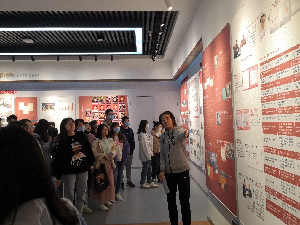 在组织委员苟元帅的组织下,本次参观学习有序展开。红烛校史馆由序厅、历史展示厅、校友厅和尾厅四个部分构成。其中,核心部分是历史展示厅,由“救国创校 筚路蓝缕”、“建国合校 探索前行”、“兴国复校 改革创新”和“强国立校 继往开来”四个篇章组成,以照片、图表和实物等为主要展示形式,客观真实地展示了学校七十多年的历史沿革和发展成就。