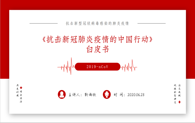 会议开始,靳雨欣同学首先介绍了新冠肺炎疫情的基本抗击历程,并对“白皮书”这一名词进行了解释。紧接着,靳雨欣同学从“中国抗击疫情的艰辛历程”、“防控和救治两个战场协同作战”、“凝聚抗击疫情的强大力量”以及“共同构建人类卫生健康共同体”四个方面具体分析了《抗击新冠肺炎疫情的中国行动》白皮书的成书逻辑与主要内容。