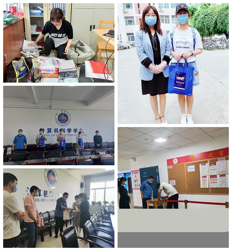 暖心服务,盼迎回家。此外,学院还为每一位返校精心准备了“计科学子返校安心包”,包括口罩、饭盒、免洗手凝胶、消毒喷壶等防疫物资,辅导员老师去往学生宿舍打扫卫生,晾晒被褥,进行消杀,确保学生返校后拥有一个安全卫生的生活环境。截止12日,必赢官网申请返校的学生已经全部安全到校,值得一提的是,两位学生因飞机延误导致到校时间较晚,本打算在校外住宿,辅导员毛庆在获悉情况后第一时间驾车到校外宾馆接回学生,开通返校“绿色通道”,为学生顺利办理返校入住手续。党委副书记袁冰和辅导员老师与返校学生进行了亲切座谈,关心学生假期学习和生活,叮嘱学生们返校后要遵守学生规定,在做好防疫工作的基础上,全心投入到学习中来,珍惜宝贵的大学时光,充实和提高自己。同时,为确保暂未返校学生的正常学习,毕业班辅导员为本科毕业生、研究生毕业生共计160余人次寄送就业资料、生活用品、复习材料、学习用具等物品,确保每一位同能居家安心学习。