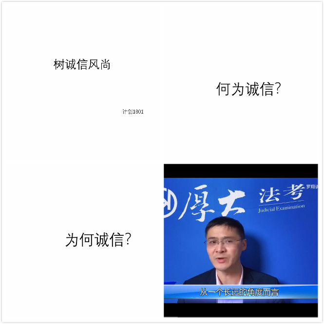 计算机科学与技术(创新实验班)1801班共同探讨了“何为诚信?”和“为何诚信?”两个问题,引导大家思考“如何做一个诚信之人”。通过观看罗翔老师解读诚信的视频,进一步加深同学们的理解和感悟。