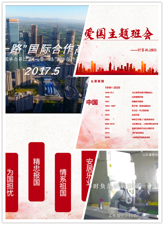 计创1802班的同学们共同回顾了建国七十年来的伟大成就,并播放了国庆节阅兵式的视频,时隔五个月再次观看这一盛事,依然让人心潮澎湃。计算机1802班的同学们将胸中激昂的爱国热情融入一首又一首红歌,在铿锵的乐声中传递对祖国的热爱。软件工程专业的同学们在线观看了视频《我的喜马拉雅》,并悉心发掘身边的每一件小事,将身边的令人感动的一点一滴汇聚成对祖国的感激之情。计算机1801班的同学们就如何实事求是,将爱国热情落到实处展开了激烈讨论。计创1801班的同学结合自身专业,介绍了国家推行发展大数据云计算人工智能的战略,坚定了同学们要发挥自身优势做出一番事业,为社会主义现代化建设添砖加瓦的决心。
