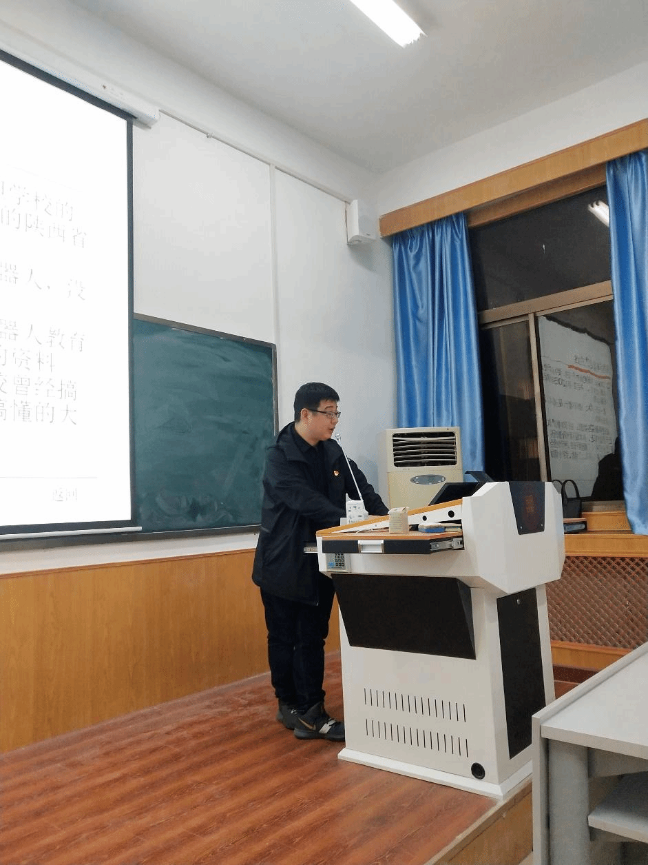 本次报告围绕韩老师在竞赛指导工作中的体会展开。韩老师在报告开始指出,做好信息技术教师的工作,首先要找到自己擅长的领域,根据自己的特长或者是兴趣爱好,将其与工作结合起来,最终做出有自己特色的工作。接着,韩老师重点介绍了当前与高中与信息技术课程相关的竞赛,如当前大热arduino 、 scatch 、 robotc等应用,他建议同学们可以根据当前趋势在大学阶段尝试接触相关知识,为以后的工作打下基础。随后,韩老师播放几段他带队参加国际青少年机器人竞赛的视频,让大家对比赛氛围、参赛队风采和比赛流程等都有了直观认知。最后韩老师与大家分享了他自2002年工作以来的心路历程,他提到不是每个优秀的人起初就具有优秀出众的能力,当处在一个位置上,即使本身不具有出众的实力,但如果肯坚持、慢慢磨练自己,就能够不断提高能力取得出色的成绩。他勉励在座的同学,不要因为觉得学习知识、学懂技术难而不肯去尝试,任何事情都是从零开始的,只要肯学,肯吃苦,就一定能慢慢将知识理清楚、转化成自身财富。随后,同学们就自己目前在学习中和职业规划中遇到的问题纷纷向韩老师进行提问,韩老师一一耐心解答。