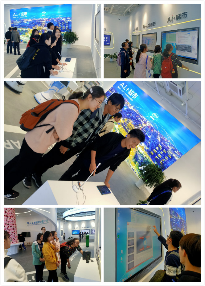 讲解结束后,同学们开始自由参观,实地试用各类AI产品,时不时向工作人员提出自己困惑,在交流和实践中全方位了解当前人工智能领域的发展情况和未来的应用前景。