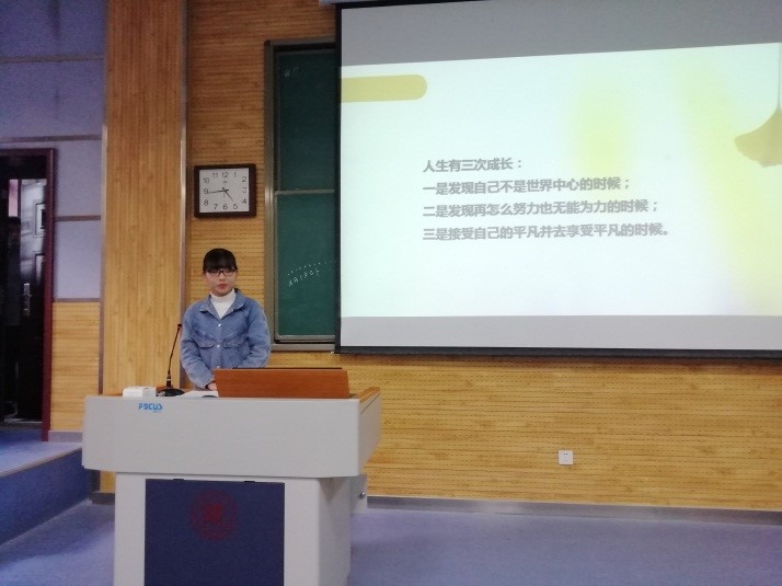 首先,冯苗苗同学结合自身从学习、工作、生活三个方面进行报告。她分享了对大学生活的思考,分析讲述了自己在求职、实习过程中遇到的难题。她强调,同学们要坚持学习并善于总结,通过参与团委或学生组织等来丰富自己的工作、实践经历,在有限的时间内创造更大的价值。发言结束之际,她表达了自己对学弟学妹们衷心的期望:学生干部要摆正自己的地位,恭谨谦逊,做到工作学习两不误。
