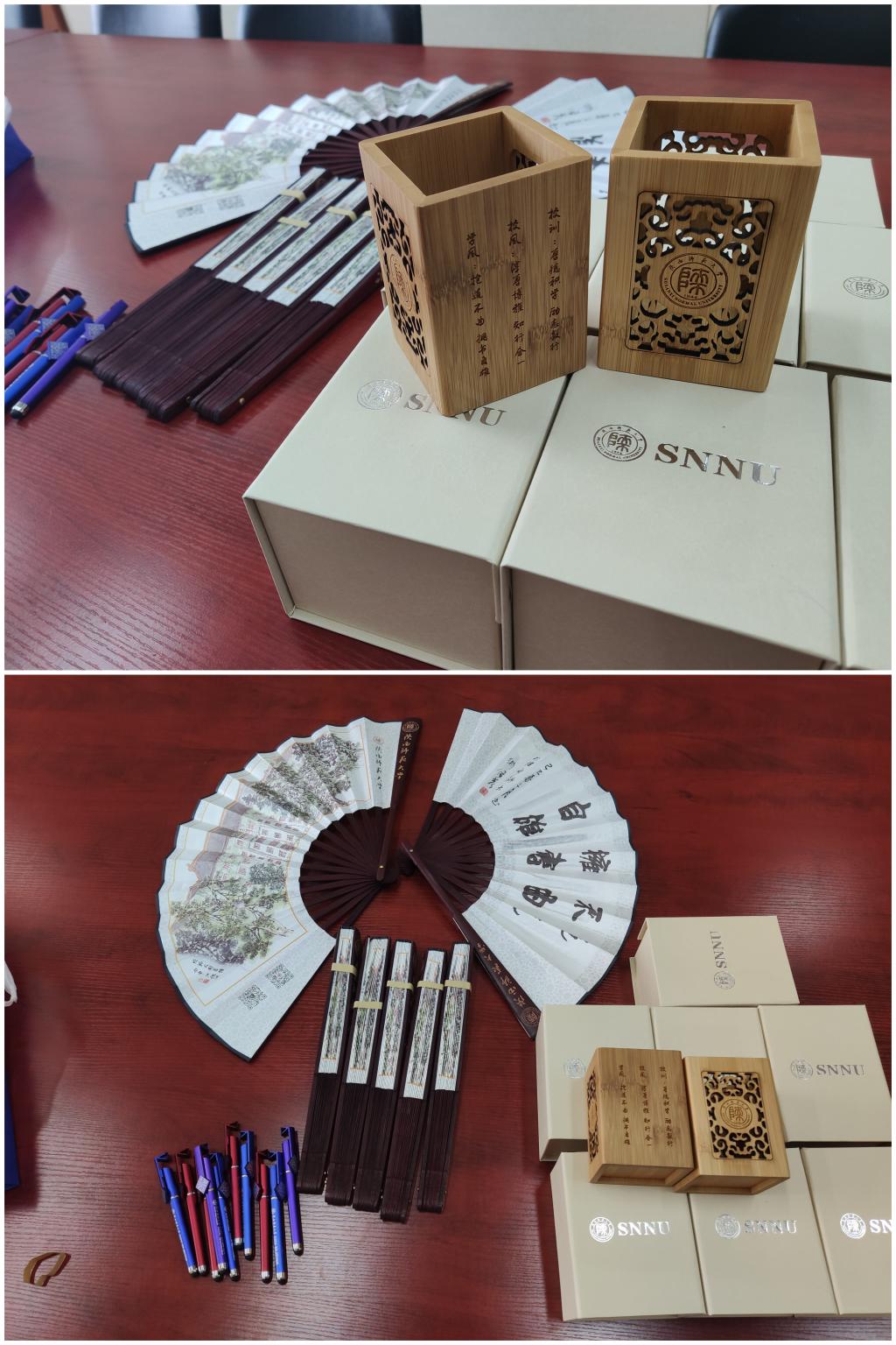 最后,学院院长王小明和党委书记黄怀平代表学院为四位同学赠送礼物,陕师大竹制笔筒、印有“抱道不曲,拥书自雄”的纪念扇和印有陕师大logo的纪念笔,希望同学们能传承学校和学院的优良传统与精神,扎根基层,为社会主义现代化发光发热。同时,同学们送给学院一套《平凡的世界》,并在扉页上写下了对学院的美好祝愿。