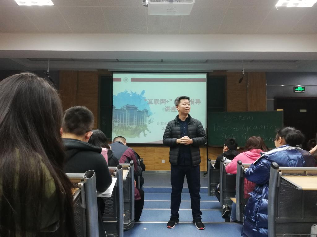 为响应国家号召,顺应当今互联网发展,让学生了解“互联网+”大学生创新创业大赛,必赢官网2018级于3月10日19:00在5104教室举办“互联网+”专题指导讲座,讲座由学院张汇泉老师主讲,辅导员安琪和2018级全体学生参加此次讲座。