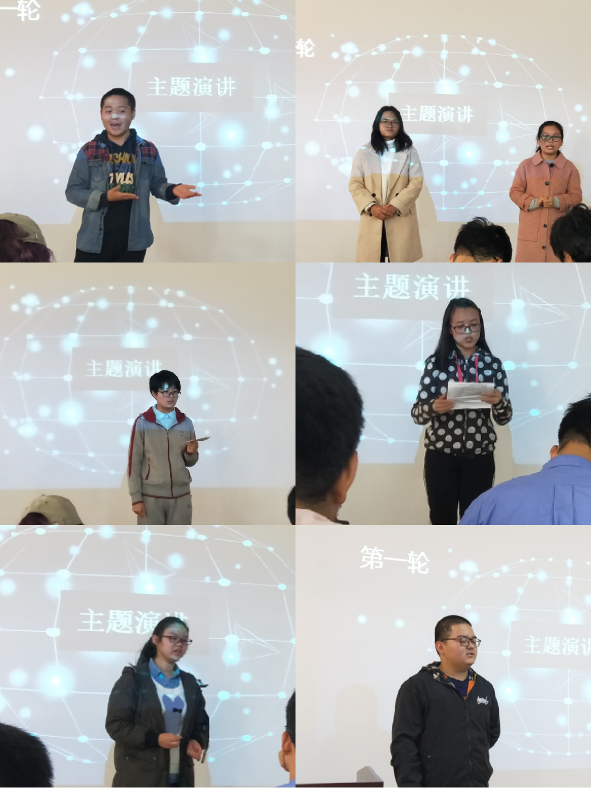 在主持人的引导下,选手们通过抽签顺序,依次上台演讲。本次比赛分两轮进行,第一轮是主题演讲,第二轮选手将依照上一轮比赛成绩由高到低依次抽取即兴发挥的主题,并在两分钟后进行观点陈述,小组最终成绩由老师评委与大众评审的综合打分决定。