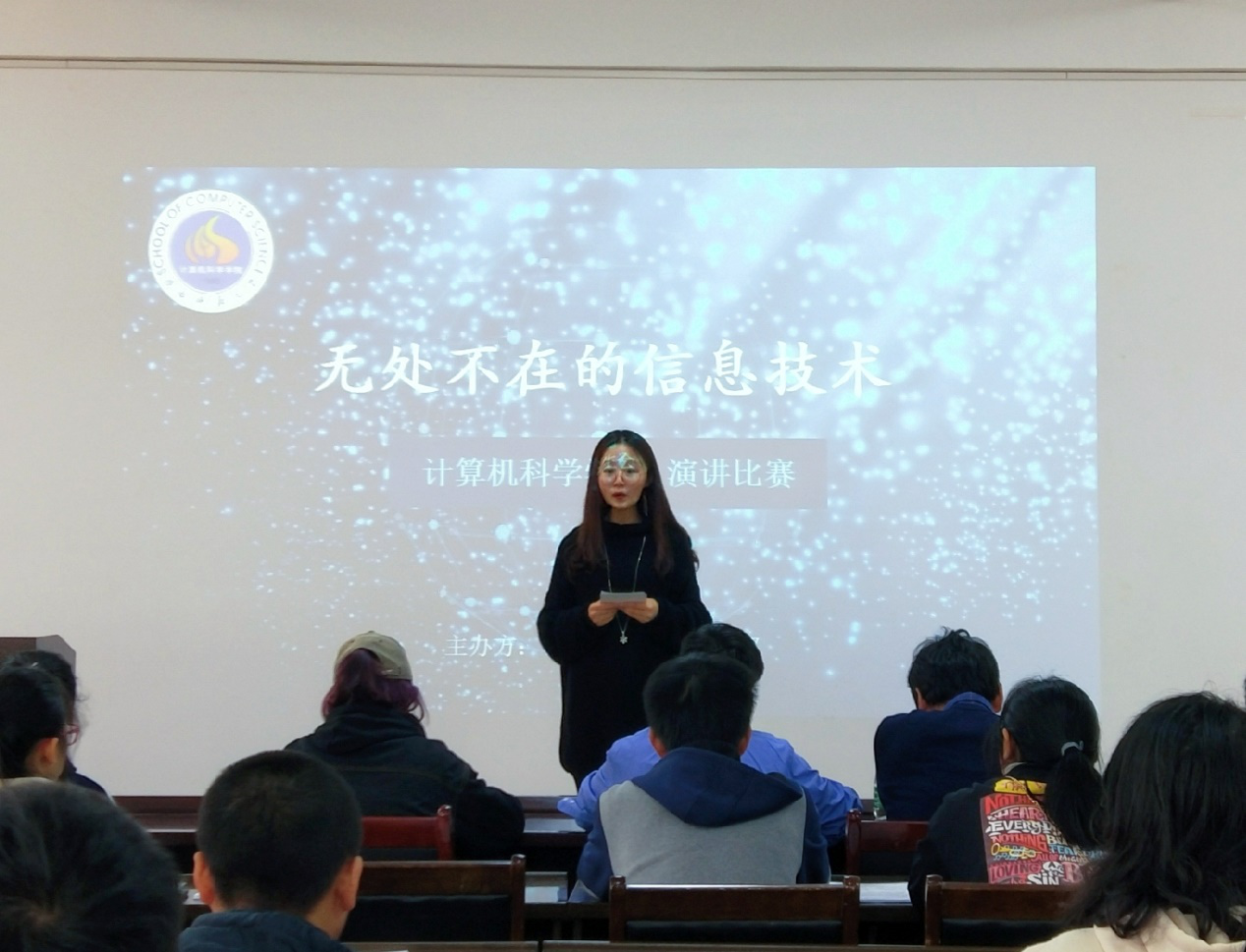 本次大赛参赛选手的演讲内容有反思信息技术的弊端,为微信新功能点赞,还有展望信息技术的未来等等。其中一些选手通过讲述自己亲身经历的故事告诉我们信息技术无处不在。他们饱满的热情,昂扬的精神状态以及富有内涵的演讲使同学们受益匪浅,博得了现场观众的阵阵掌声。