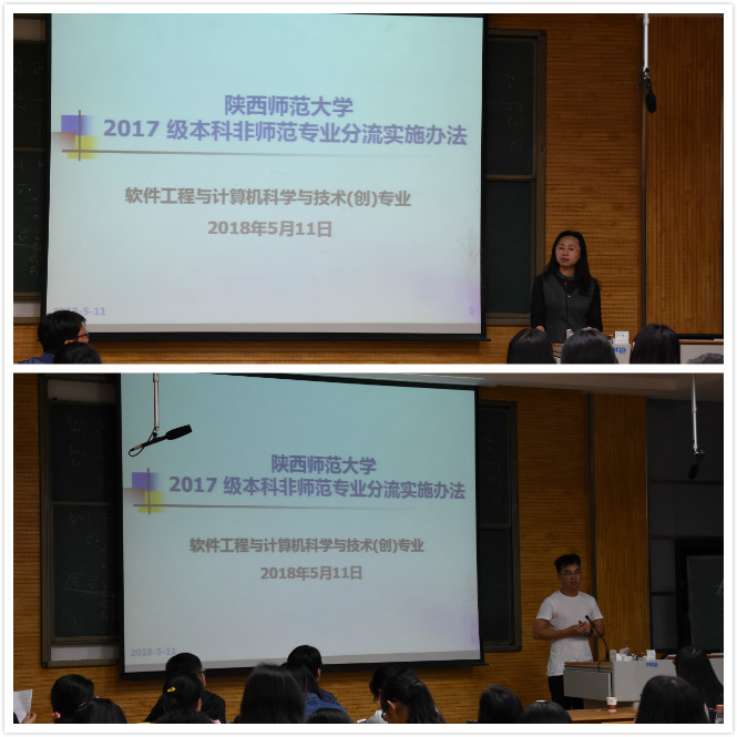 为了使同学们进一步深入了解专业分流相关政策,帮助大家明确各专业课程设置以及未来就业考研定位,5月11日晚7时许,必赢官网2017级非师范生专业分流宣讲会在雁塔校区5301教室举行。必赢官网党委副书记袁冰老师、教学副院长马苗老师、软件工程专业负责人祁超老师、华讯科技有限公司企业负责人姚国新、京东云创中心总经理王泽方、2017级辅导员陈应权以及2017级全体非师范生参加了本次专业分流宣讲会。