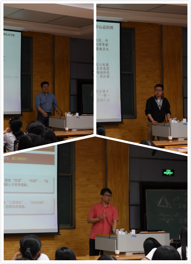 随后,祁超老师分别对计算机科学与技术(创新实验班)、软件工程两个专业进行了全面、系统的介绍。从专业课程体系、专业师资情况、专业研究方向及特点、专业前景与发展等几方面进行讲解,通过相关数据分析的使同学们对专业形成更深刻和全面的认识,帮助同学们合理选择专业。华讯科技负责人姚国新强调:“要对选择足够了解,才能正确做出选择。”他认为,选择的专业还有学科只是一个方面,重要的是我们的思考方式和心态。京东云创中心负责人从商城、物流、云计算等方面向我们介绍了京东的相关情况。他说:“现如今互联网发展迅速,西安在人才的培育和输出上有很大优势,现在是创业最好的时代,年轻人应当抓住机遇。”