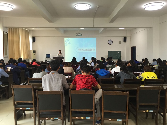 以上的四位同学用自己实习和就业的经验给2015级的师范生们提出了宝贵的建议,最后的交流环节也为同学们解答了相关的疑惑,此次讲座圆满成功。