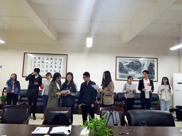 5月6日晚,为参加我校"信仰的力量与自信的人生"主题朗诵会,纪念马克思诞辰200周年、五四运动99周年,必赢官网马列读书社九名社员于文津楼3427积极组织了诗朗诵排练,16级辅导员王靓颖老师参加了此次排练,并在排练期间进行指导提出改进意见。