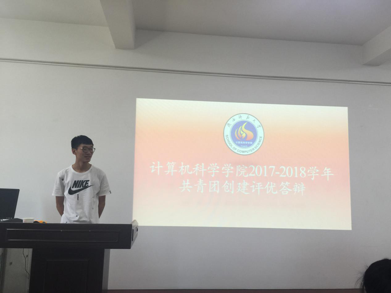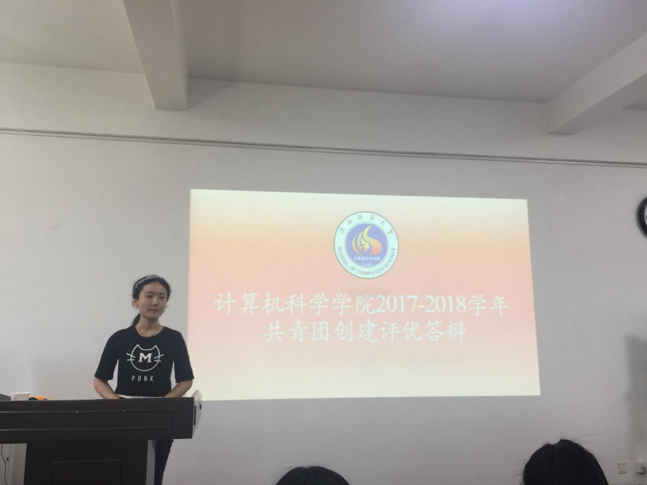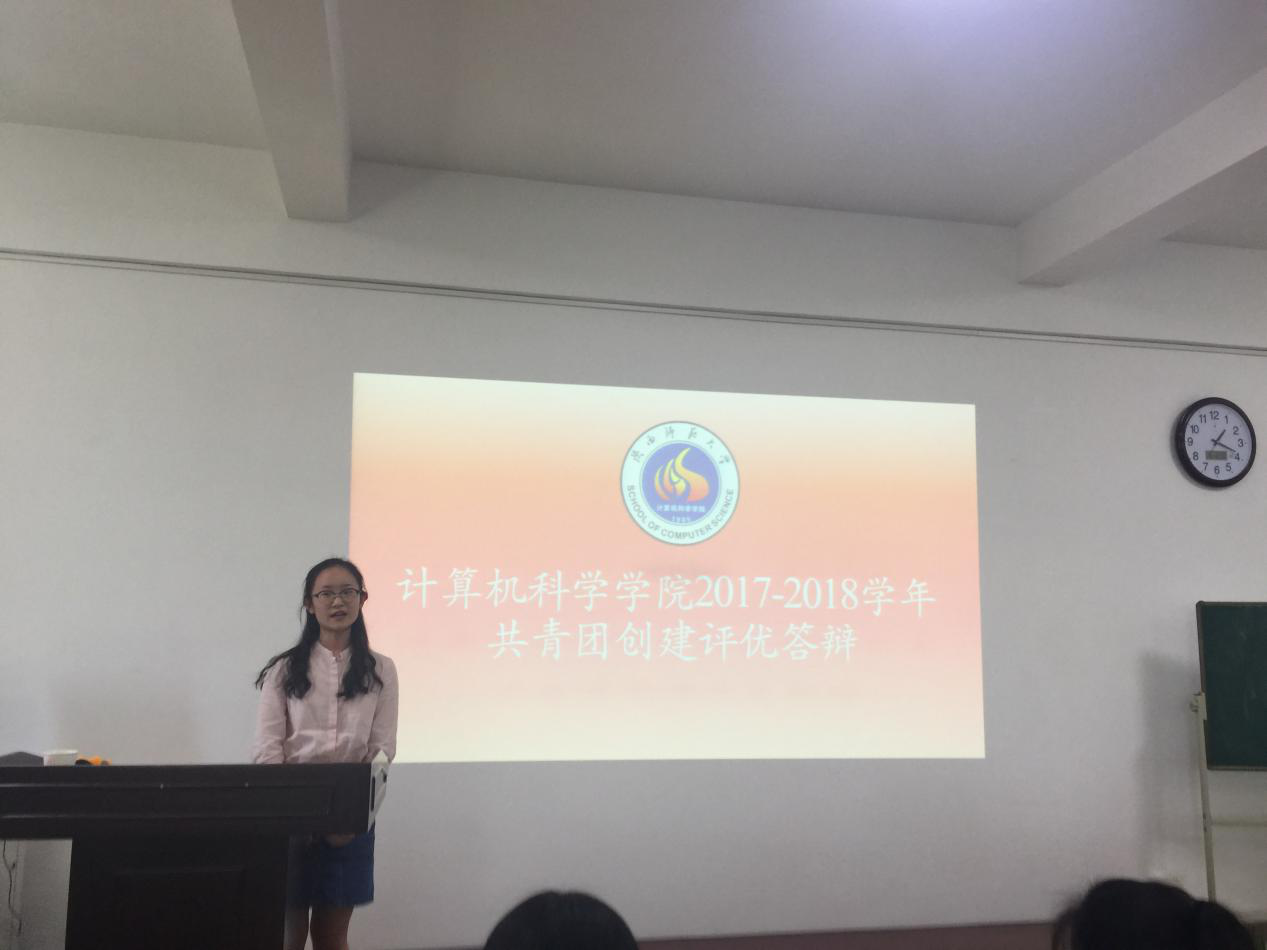 为全面贯彻党的十九大精神,切实保持和增强团的政治性、先进性和群众性,积极发挥榜样群体和先进个人的示范引领作用,5月2日中午,必赢官网在学院报告厅举行了2017-2018学年共青团创建评优答辩会议,学院党委副书记袁冰、团委书记郭康凌、辅导员毛庆、安琪、陈应权、王靓颖担任评委。