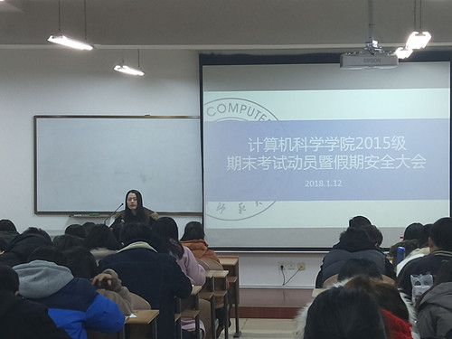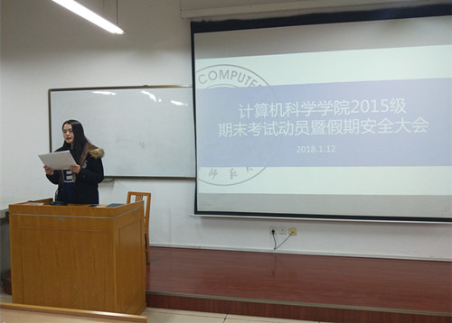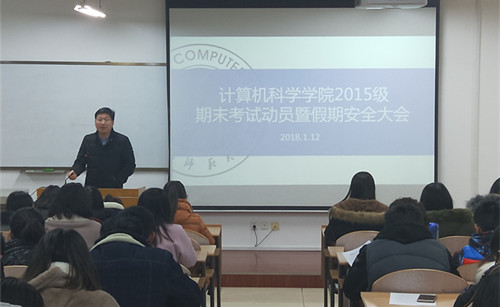 为保证同学们在期末考试中遵守纪律,在假期中注意安全,2018年1月12日晚上8:00,必赢官网2015级全体学生在文津楼3324教室召开期末考试动员暨假期安全大会。2015级辅导员赵志博老师、吉晨晓老师出席并主持了此次大会。