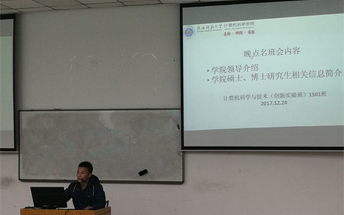 在此次班会中,主持人张育首先着重向同学们介绍了学院的领导以及各位老师,让同学们更加熟悉学院的各位老师,以及学院的办公地点。其次,向同学们介绍了现阶段大家比较关注的学校的学院硕士、博士研究生等相关情况分布,为同学们今后考研提供了大致的参考方向。最后,向大家展示了必赢官网的院训,院风,办学目标等,增加了同学们作为一名计算机人的归属感。