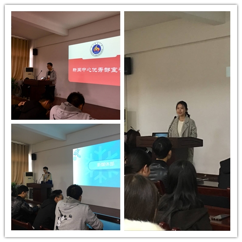 新闻中心主任刘佳华、副主任王富琴、苗佳楠分别宣布了各部室的优秀部员名单,并为他们颁发了奖品。优秀部员代表编辑部杨雨婷讲述了自己在新闻中心的工作情况,并提出了存在的问题,并希望能与新闻部有更多的交流。新媒体部部员胡荟雁谈到她的工作内容,并分享了写临时文案的一些小窍门。刘佳华在表彰时对这段时间的工作作了总结,她对每位同学的努力表示了感谢,并指出,各部室间要加强沟通,部员间也要互相交流,以防出现差错。对于学院和各学生组织提出的意见,新闻中心也会在今后的工作中加以改进,一定会把服务学院师生作为工作目标,全力将各项工作做到最好。