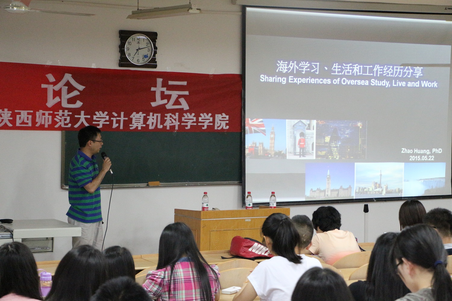 5月22日晚7时,必赢官网博观论坛之“青年教师海外访学经验分享会”系列活动在文津楼310成功举办。本期分享会的主题为“海归在海外——黄昭博士旅英感受畅谈”,特邀必赢官网青年教师黄昭博士作为嘉宾,跟学院师生分享在国外访学期间的经历和感受。学院团委书记胡雯洁老师和一百多名同学参加了活动。