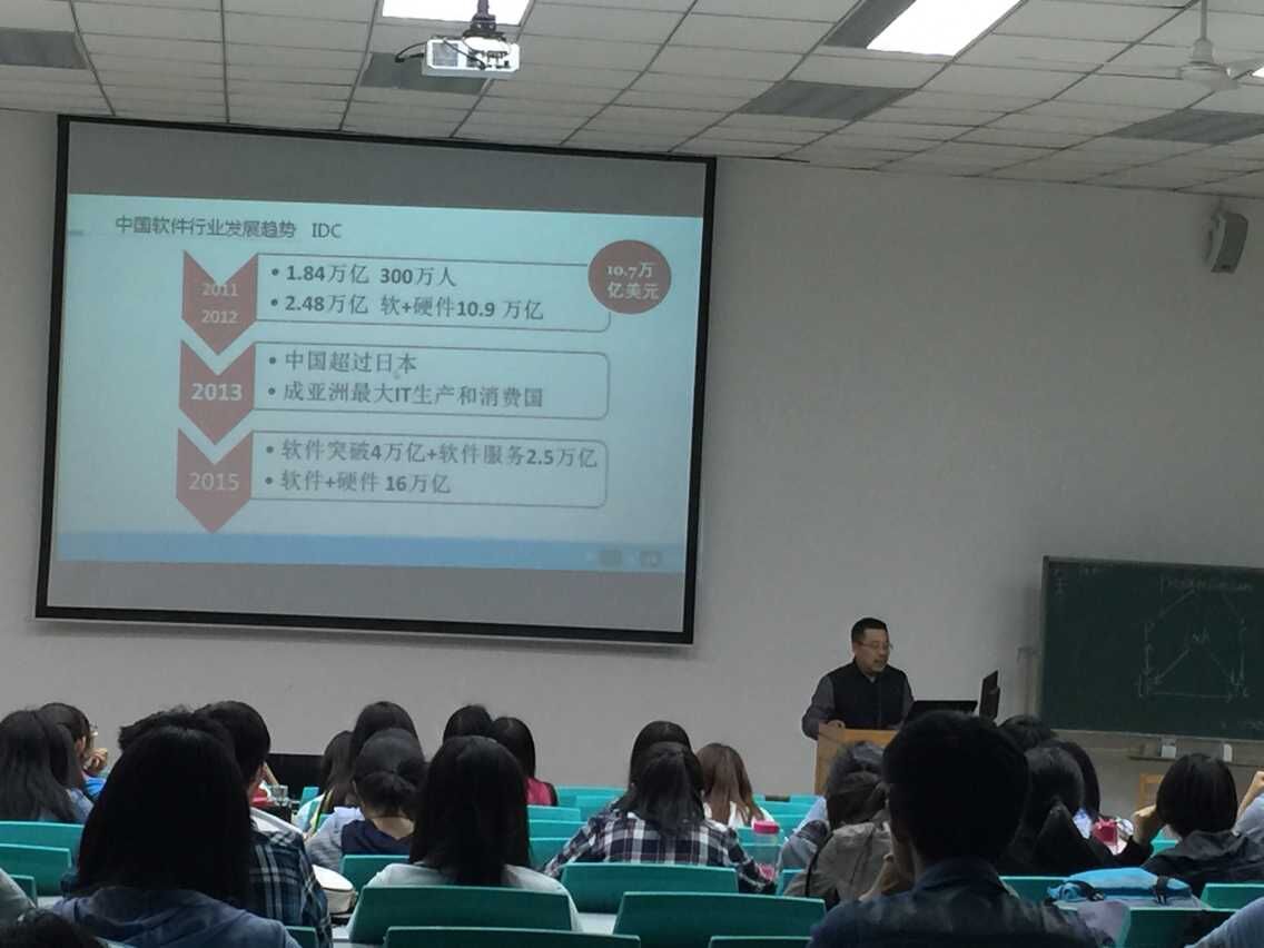 2015年5月21日晚7点,深蓝软件公司在学术报告厅202教室为13级学生成功举办未来就业指导培训,13级辅导员冯倩老师13级全体同学参加了此次活动