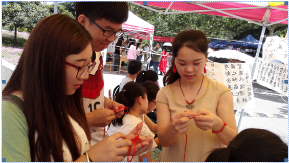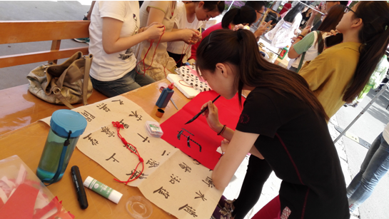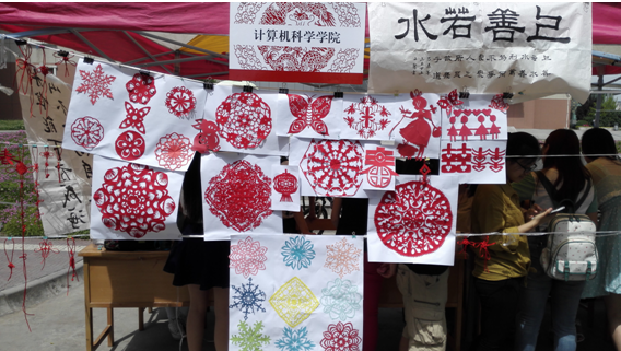 必赢官网作为参展单位之一,主要展示了剪纸、中国结以及书法等传统文化作品。其中,剪纸形式各样,包含人物、动物以及窗花形式,展现了同学们的精巧技艺,吸引了众多同学驻足欣赏以及合影留念;中国结不仅精巧美观,并且样式繁多,使得众多女同学爱不释手;书法作品也充分展示了必赢官网同学们的多才多艺。2012级计科2班的文馨同学的书法作品“上善若水”,令现场的同学们大为赞赏。中午时分,随着下课同学的逐渐增多,文馨同学现场进行了书法展示,吸引了众多同学的围观;2012级计科1班的杨静同学向现场的同学们展示了中国结的编法,让现场的同学们可以亲手体验中国结的制作过程,在学习的过程中感受中国传统文化的魅力。