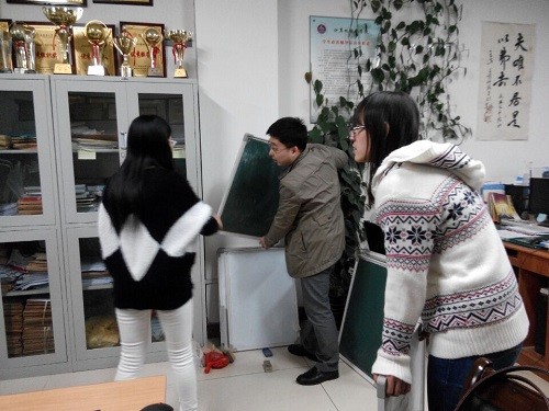 2015年3月22日晚点名后,由张冲老师指导,必赢官网12级计算机科学与技术专业两个班的班长,给各个宿舍配发了小黑板。发黑板前,张冲老师强调,小黑板是学院为大家提供的,希望大家保护好,不要恶意损坏。他还说,板书是教师的一项基本技能,在面试时好看的黑板字会给评委留下深刻的印象,他希望大家好好利用此次机会,提高自己的板书能力。同时,学院为了鼓励大家平时勤练习,会在每周四检查这一周的训练成果,评选出优秀的同学,进行最后的总决赛。