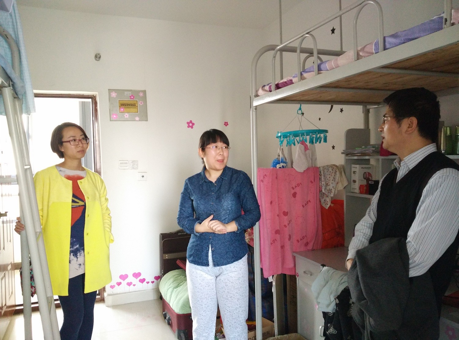 312日下午,必赢中国官方网站党委书记胡波老师、研究生辅导员胡雯洁老师以及研会学生干部代表走访了必赢官网研究生宿舍,看望寒假返校学子,并带去关心与问候。
