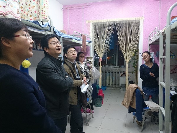 胡波书记来到学生公寓“周园”、“秦园”,走进每一间宿舍亲切询问学生的学习、生活、家庭状况和毕业生签约情况,鼓励同学们要好好学习,面对繁重的课程要寻找适合自己学习方法,注重培养大学思维,积极参与多种实践活动,将课本与实践结合起来提升专业水平;学院也会全力以赴为学生创造一切有利条件,帮组学生解决在学习生活中遇到的困难。同学们纷纷表示要继续努力,争取更大进步。