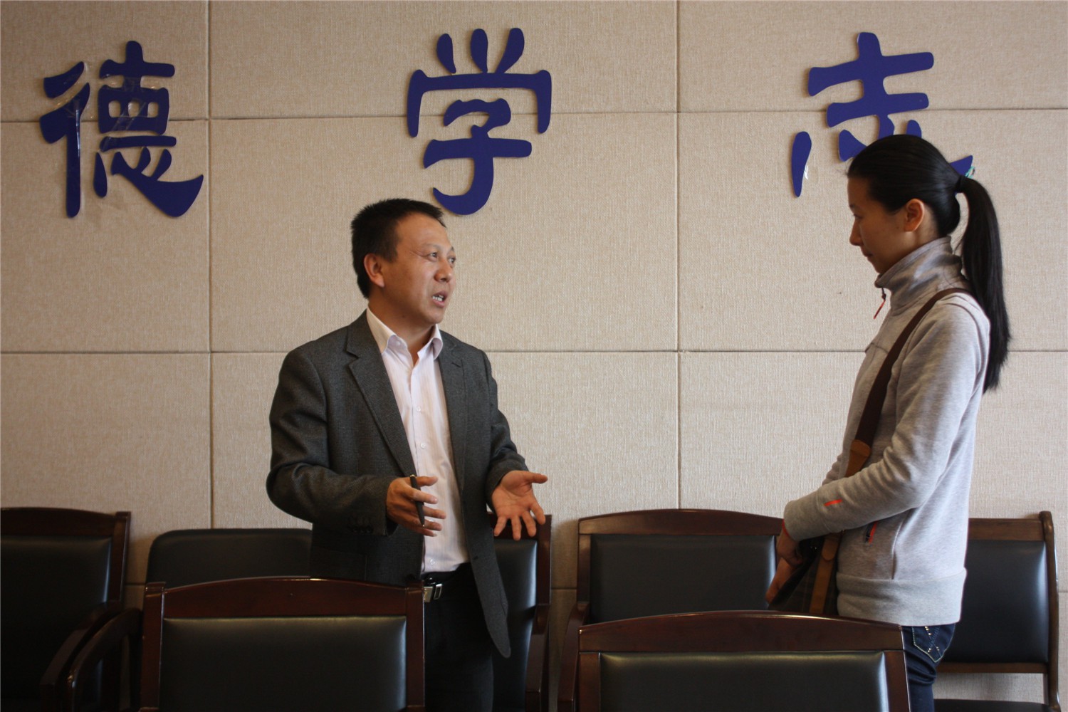 2014年4月23日上午,喀什师范学院信息工程技术系党总支副书记、主任李丙春一行两人来必赢官网招聘优秀研究生。招聘会前,必赢官网党委副书记袁冰老师热情接待了李主任一行,并与之进行了交流。