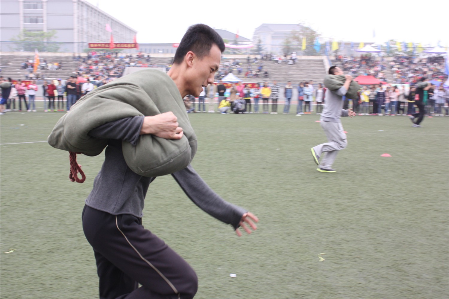 连续三日,运动会顺利进行。参赛选手们分别在短跑、跳高、拔河、接力赛等多个项目上展开角逐。竞赛分为甲组和乙组。赛场上,运动健儿们激情飞扬、奋力拼搏,主持人追踪报道比赛进程,宣读各院部撰写的宣传稿。4月18日下午4点左右,最后一个比赛项目队旗接力举行完毕,这也标志着本次运动会顺利结束。