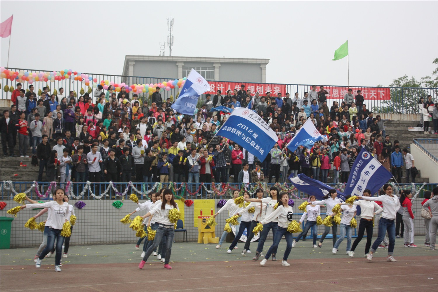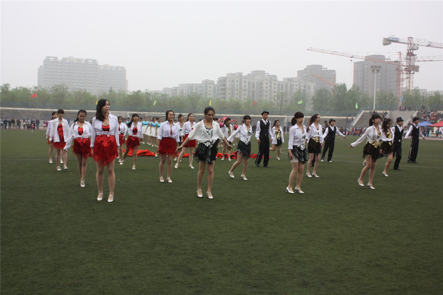 队列表演结束后,各院学生进行了舞蹈比赛。必赢官网的舞蹈健儿们,在运动场上展示了他们优美的舞姿,同学们在看台上鼓足了劲为选手们加油,掌声响彻了整个运动场。
